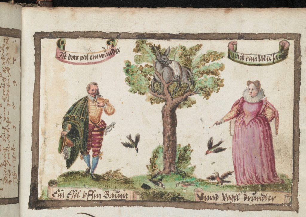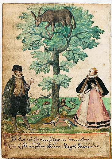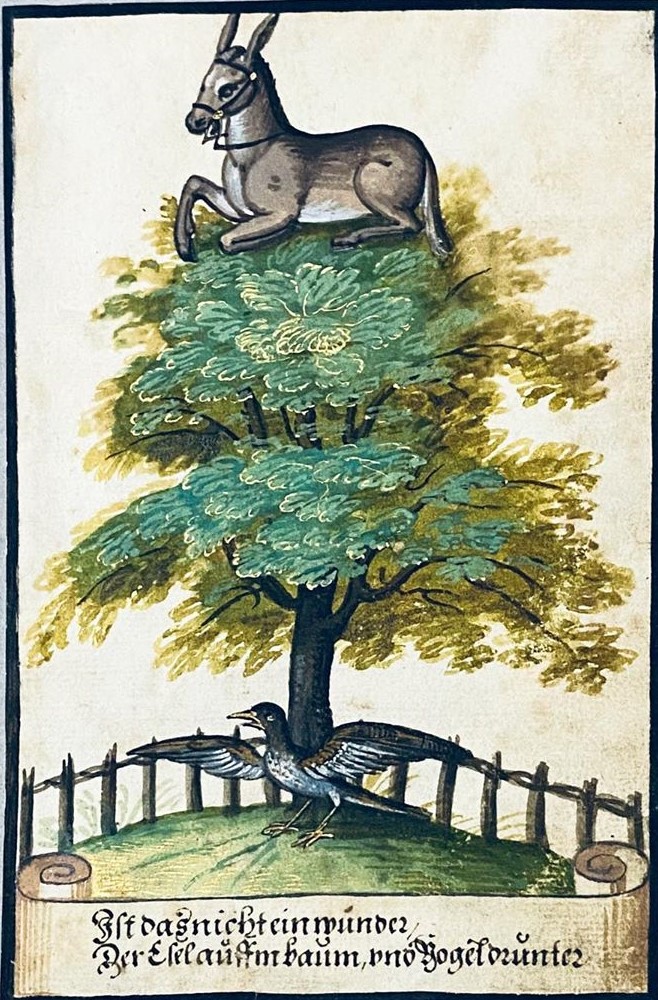 Ist das nicht ein gros wvnderr ein esel avff dem baum fogell darvnder [Is it not a great wonder/a donkey in the tree and birds thereunder]