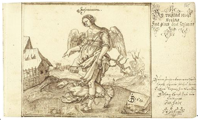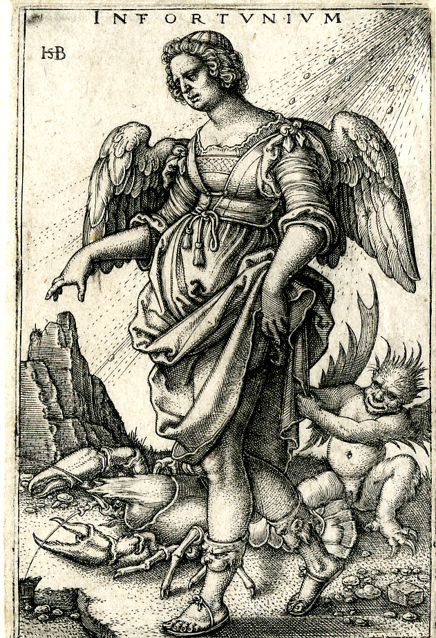 I can at least see that it is dated 1631 and entitled Infortunium, so almost a century after Beham’s Infortunium which it is copying (c.1541) — though notice how tiny the devil has become!
