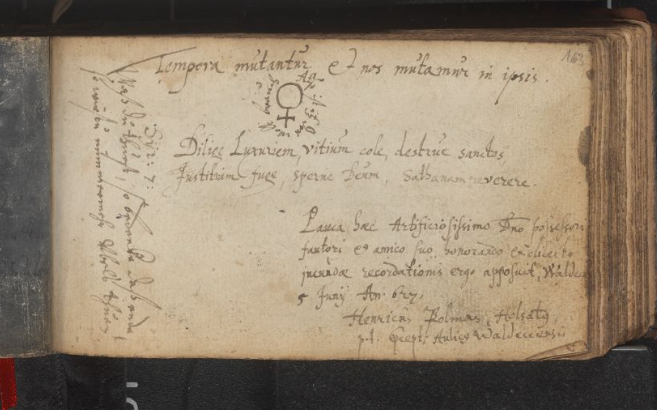 When we again restore order, we read ALSO STETS IN DER WELT [it is thus in the world] above a world-orb turned upside down and flanked by the philosophers Democritus and Heraclitus — but to explore this motif would be a post in itself! Some other time perhaps! [see now my post https://albumamicorumear-e4qvahs764.live-website.com/the-fool-in-the-albums/ ]