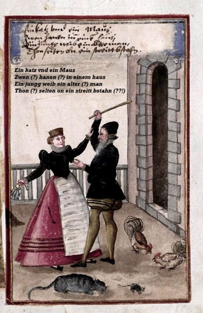 The only painted miniature in the recently digitised album of Gerhard Horst, Hs. 35153 in the Library of the Germanisches Nationalmuseum (dated entries 1607-11) depicts a large devil sitting on a close-stool devouring soldiers and excreting them as priests — a monk sprinkles holy water over the issue. The caption below the image (not shown here) is clearly written — for once! — but not entirely transparent (to me at least! Happy to receive elucidation of the first line from readers!). It reads
