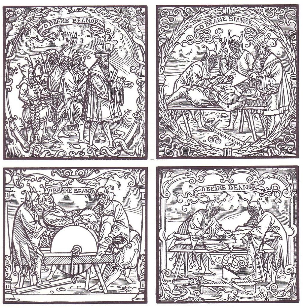 woodcut illustrations to Dinckel, De origine… depositio Beanorum (Erfurt, 1572)