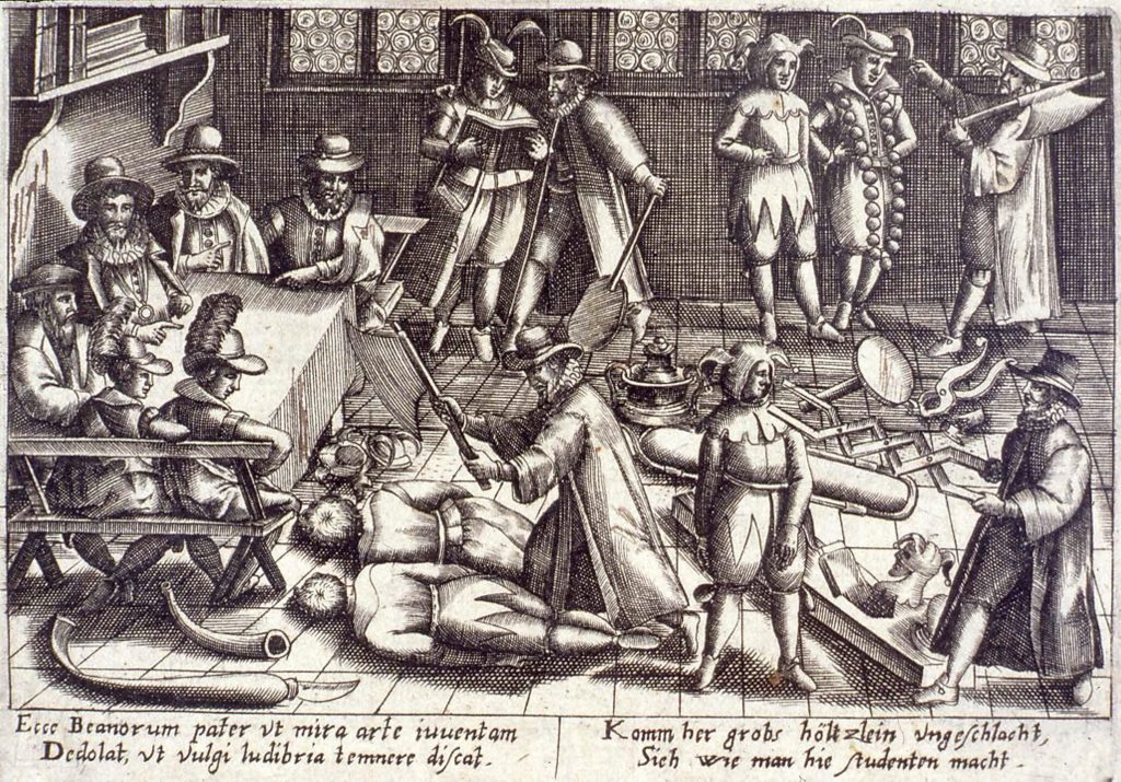 Ecce beanoru[m] pater ut mira arte iuventam Dedolat, ut Vulgi ludibria temnere discat. [Behold the father of the freshmen in wonderful fashion may ‘tear’ youth, so that the Vulgar may learn to keep their toys]