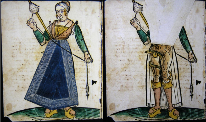 Long before the Italian-inspired craze for such images of the 1590s, the lift-the-skirt variety was familiar in Germany, the earliest such image (?c.1520) now preserved in Berlin — where the shock is not a reminder of mortality, but a warning of the dangerous nature of women, and what is to be found between their legs!