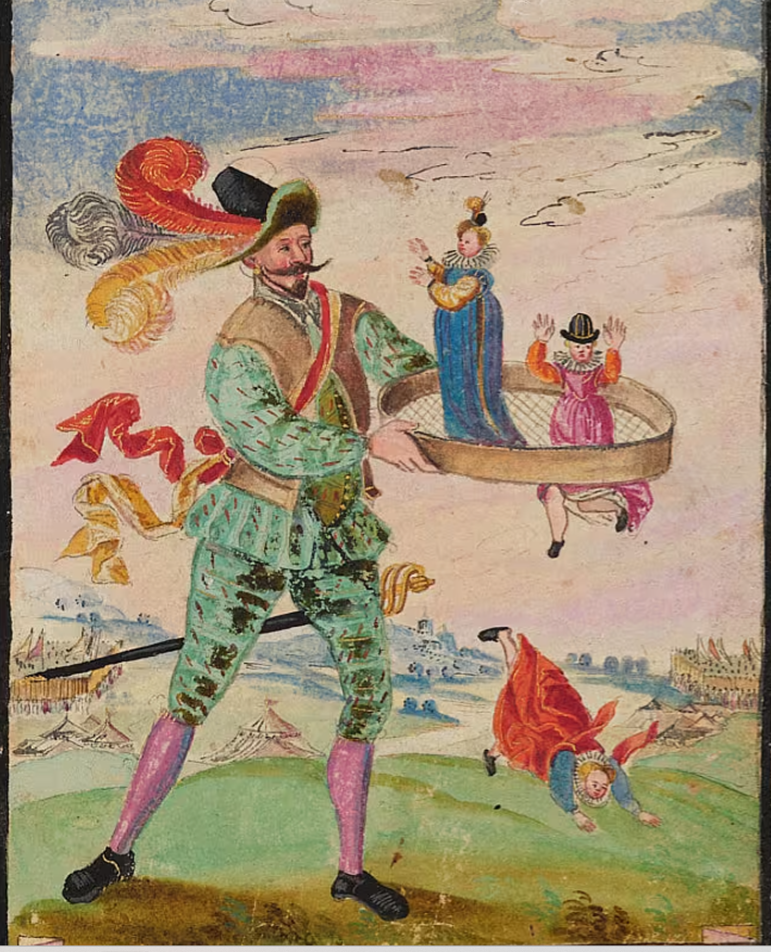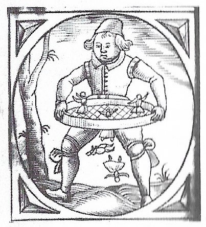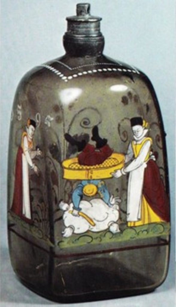 sieves fools from Wickram, Kurtzweil (Strasbourg 1539, etc.)Speckstein biscuit-mould, this side dated 1541. Banderoles: de frigen naren mosen durch rifen fallen [‘free’ fools must fall through the sieve] — ‘free’ here could mean ‘single/unmarried’ or ‘undisciplined/uncultivated’. Wiesbaden Museum — scanned friom Arens 1971.from the album of Daniel von Redern, c.1590. Stockholm, Kungliga Biblioteket, Signatur Ir 2 aStuttgart, WLB, Frommann Collection, cod. hist. fol. 908-3, f.24v.moogrammist BKGF 1590 BM impression dovecoteenamel-paint glass bottle dated 1595; cf bottle of same date sold Sothebys, November 21 2006detail of plate in the print-book, Philotheca Corneliana (1619)