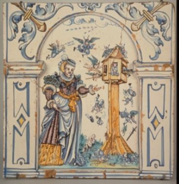 Once again, the motif — in the earlier Amman version — was used by artists in other media — see the Winterthur tile below.