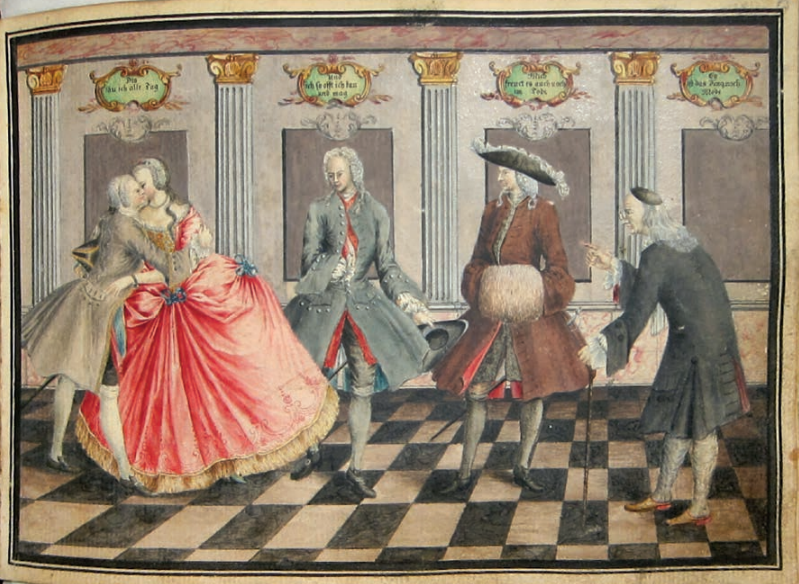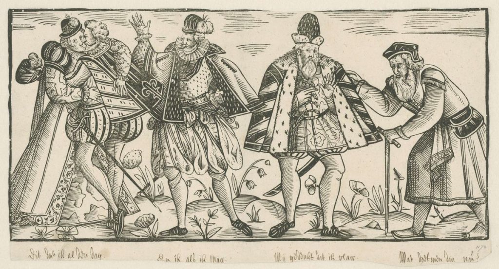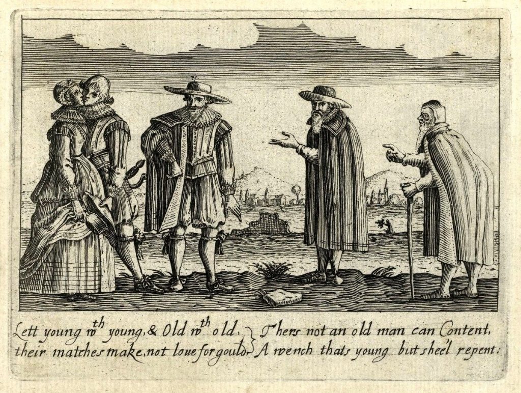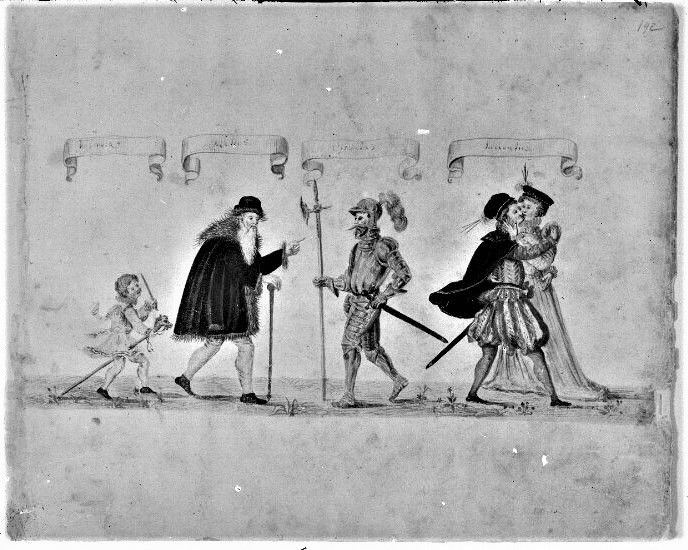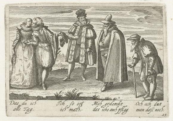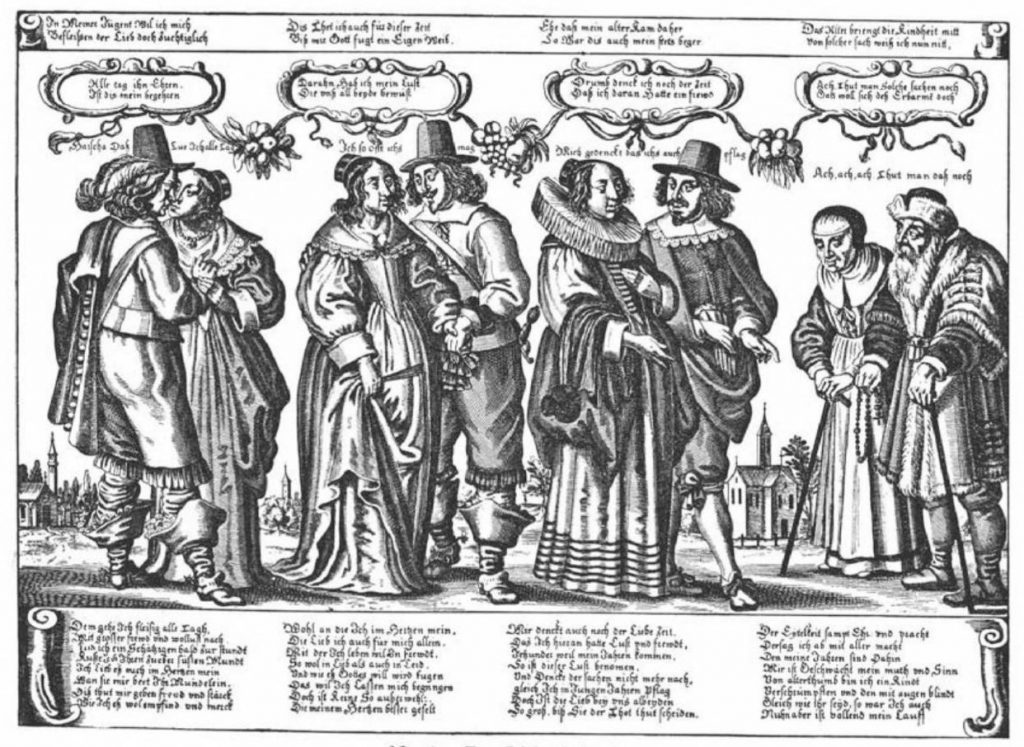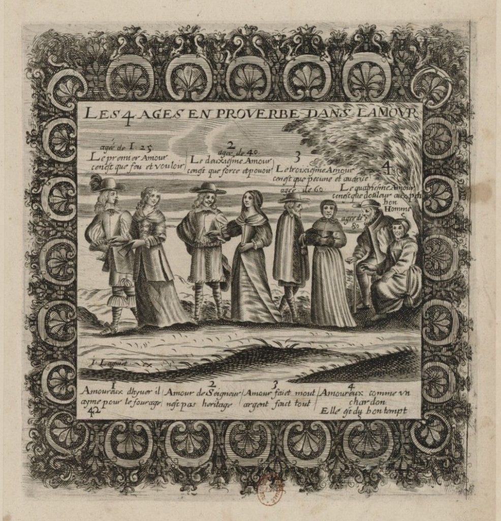 From around the middle of the 17C, German and French publishers issued versions of our motif but with the 4 Ages as couples.