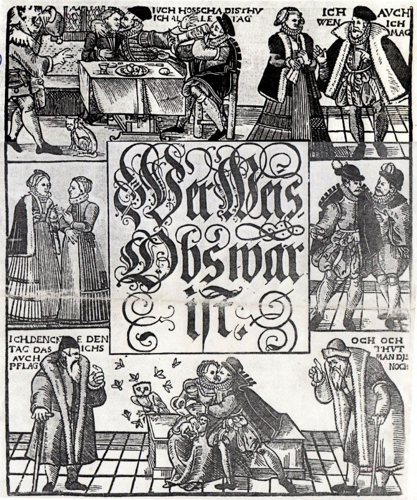 The Lüneburg pastor, Georg Starck, complained about this very sheet in a pamphlet published in 1582, saying it was pasted to the wall of almost every house he entered, but recommending it should rather be used as toilet paper. As ever, it is chastening to reflect that for such an evidently popular print, we have but one example extant.