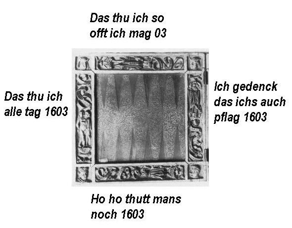and as carved at the four edges of a gameboard dated 1603 in the Bayerisches Nationalmuseum: