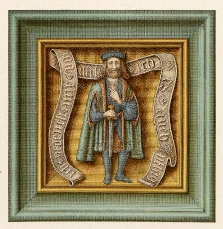 Further evidence of the popularity of the motif is afforded by its presence in other media, including a set of stove-tiles of late 16C date, only one of which is preserved — in this drawing —