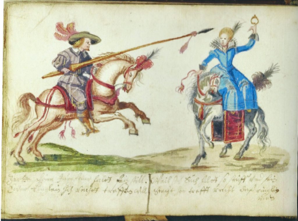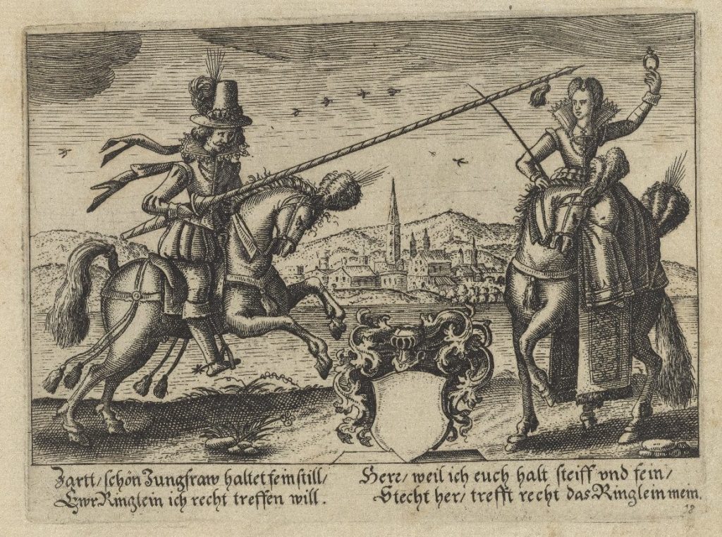 Stecht her, trefft recht das Ringlein mein prick here, hit my little ring right.
