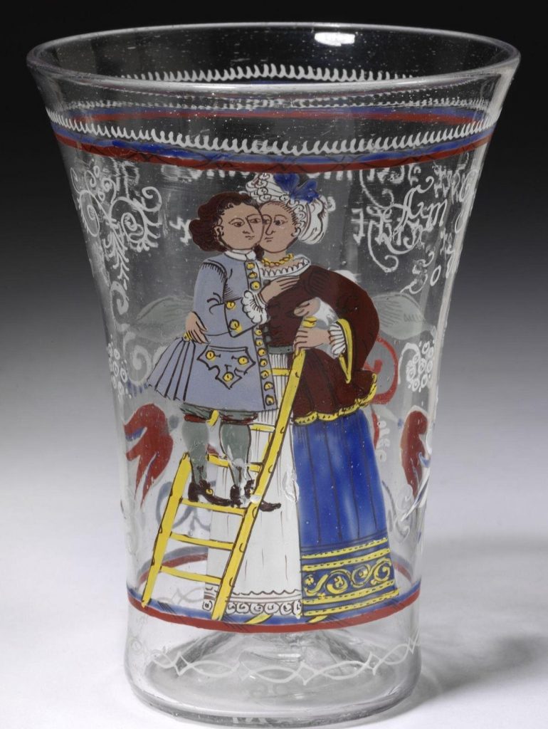 enamel-painted glass, Franken, 1675×1725. London, Victoria & Albert Museum,1907-1855. Inscription reads:: Ein Jeder nehme seines gleichen, So darff er nicht die letter steigen [everyone takes his equal, so he doesn’t have to climb the ladder]enamel-painted glass, Central Germany, 18C. Inscription: Ein jeder nehme seines gleichen/ So darf er nicht die Laetter steigen. Biemann Collection, Zurich