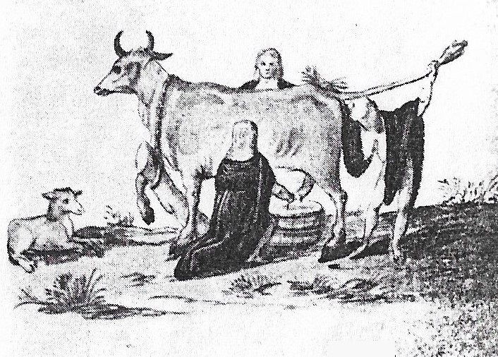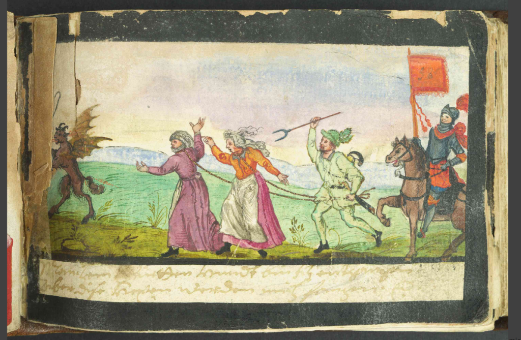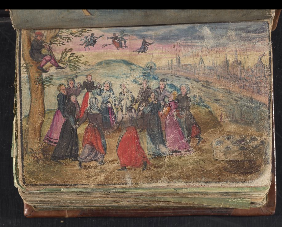 A strange scene in the Giese album appears to show three women milking a cow — now it doesn’t take 3 people to milk a cow, nor is examining its anus a normal part of the process! The miniature was commissioned in 1621 by Scotsman, Francis Gordon [Franciscus Gordonius Scoto-Britannus], so I am suggesting it depicts Scottish witches — already notorious by this date — ritually milking a cow.