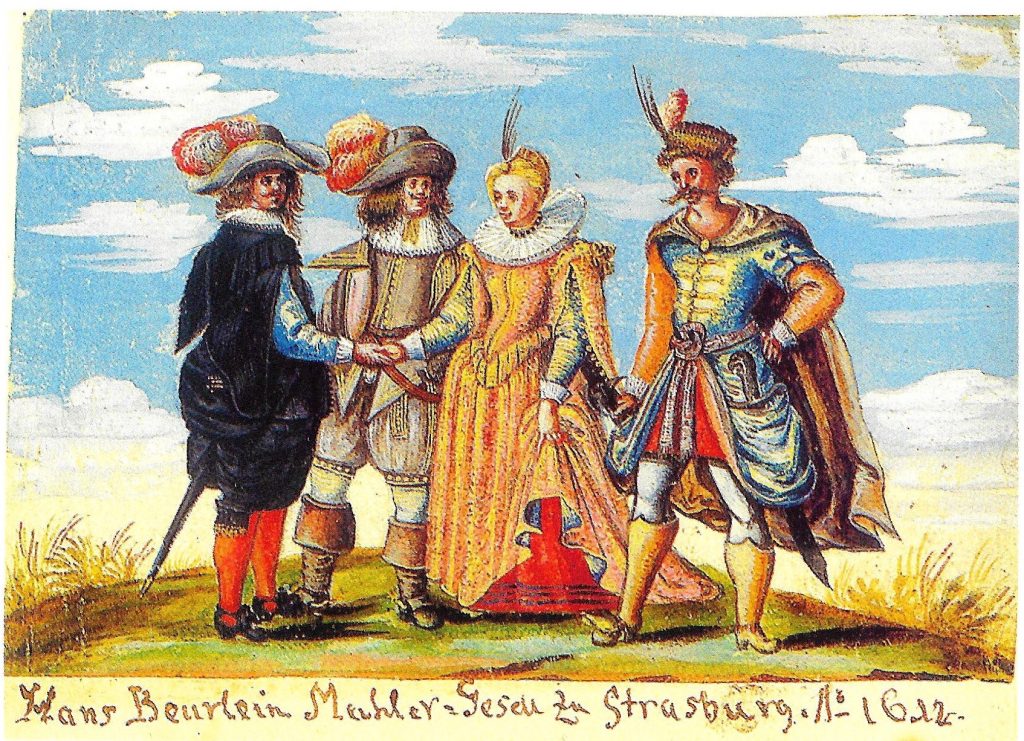 This leaf painted in 1642 by Hans Beurlein of Strasbourg who here describes himself as a Mahler-Gesell (apprentice painter). Bamberg, Staatsbibliothek, 1 Qc 104 [scanned from Taegert]